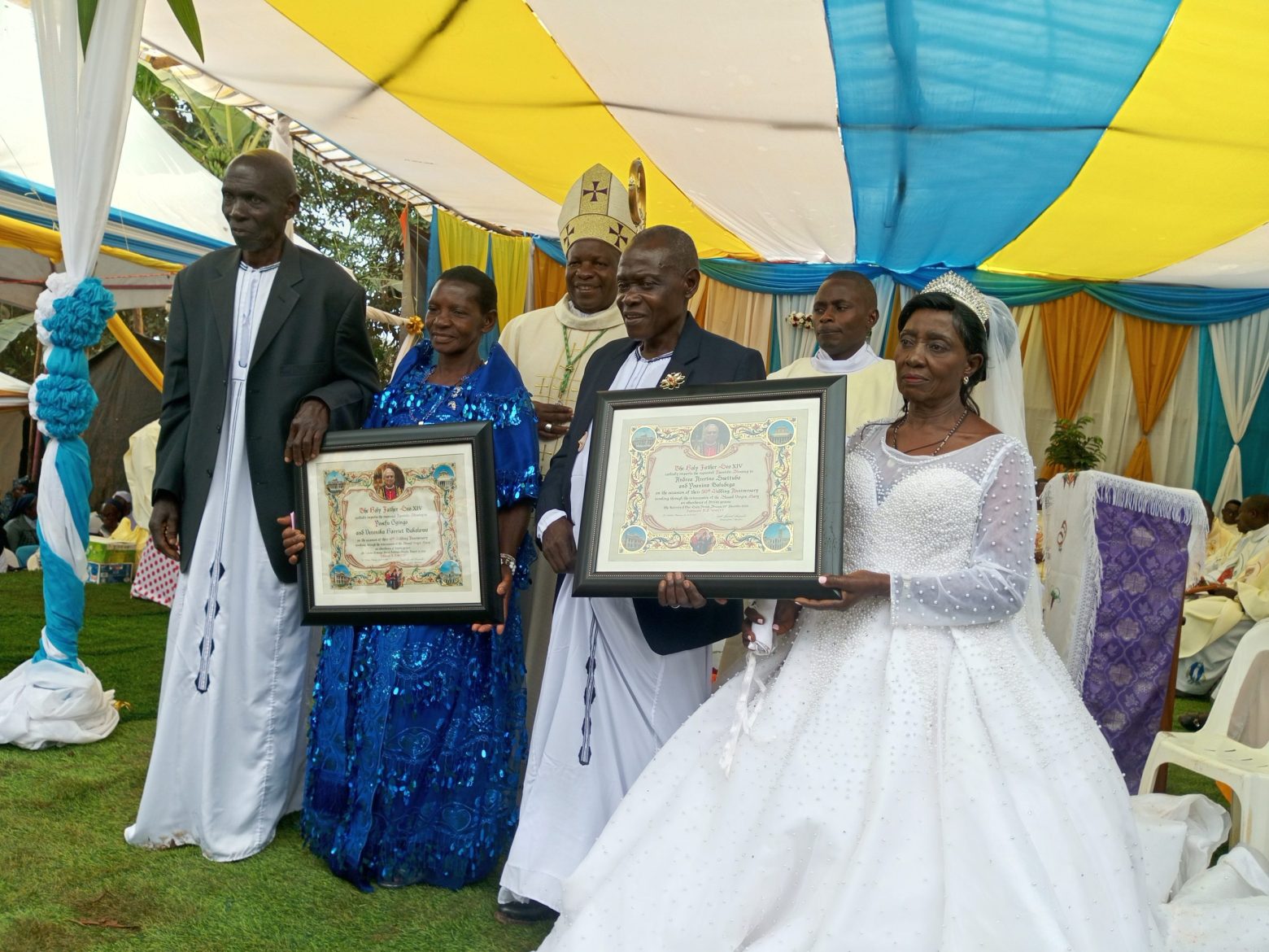 In his remarks, Mr. Andrea Ssettuba thanked God for sustaining their marriage through numerous challenges over the past five decades. He also expressed gratitude to his wife, Rose Ssettuba, for her unwavering support and commitment to raising their children, even during difficult times.